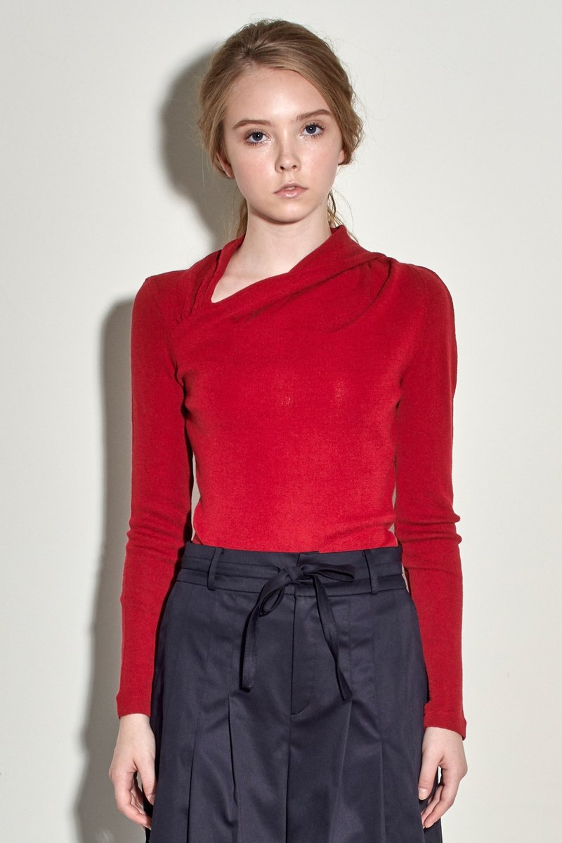 Gary Lin 紅色不對稱扭轉領口針織上衣