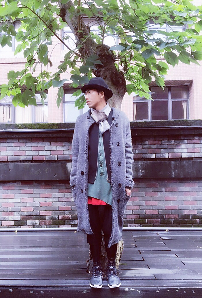 多層次也可以用各種不同質感去表現,利用粗線毛大衣外套,加一件太空材質無袖背心 內層用比較柔布料軟衝突色調,內搭褲和運動鞋!帽子也是必備單品~