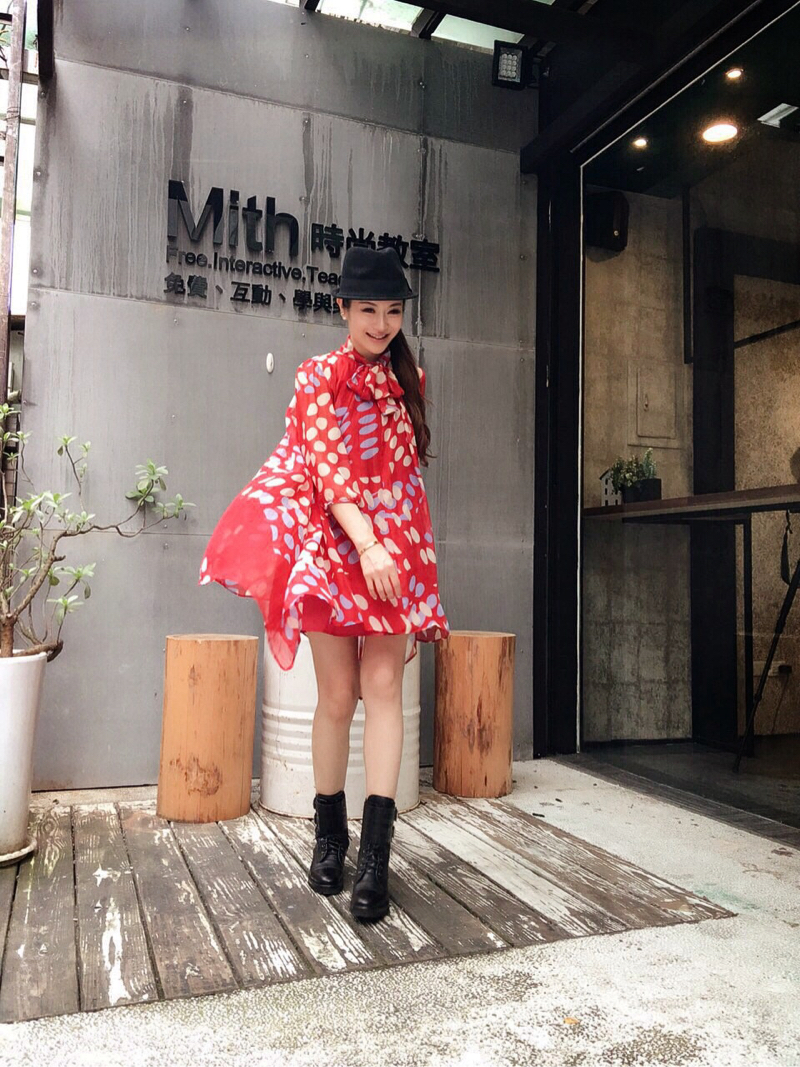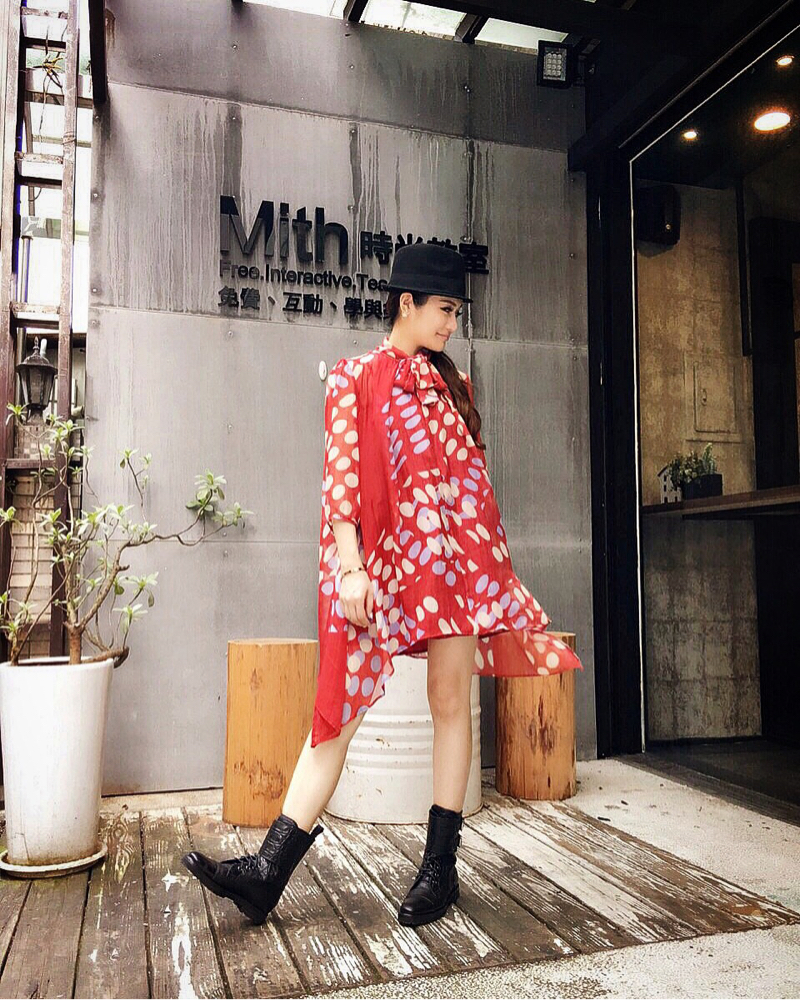 春天就是得來ㄧ件飄逸的雪紡洋裝,貝兒喜歡在很有女人味的洋裝上,搭配帥氣軍靴,巧妙結合女人味又不失個性的感覺。穿出屬於自己風格!