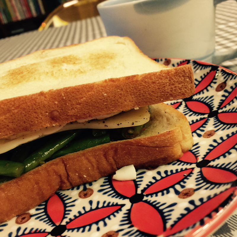 前一晚的菜剩一點怎麼辦~ 今天做了奶油Mozzrella香菇雞腿絲加蛋三明治 VS 奶油Mozzrella蛋加xo醬四季豆三明治! 😆😆😆😋😋