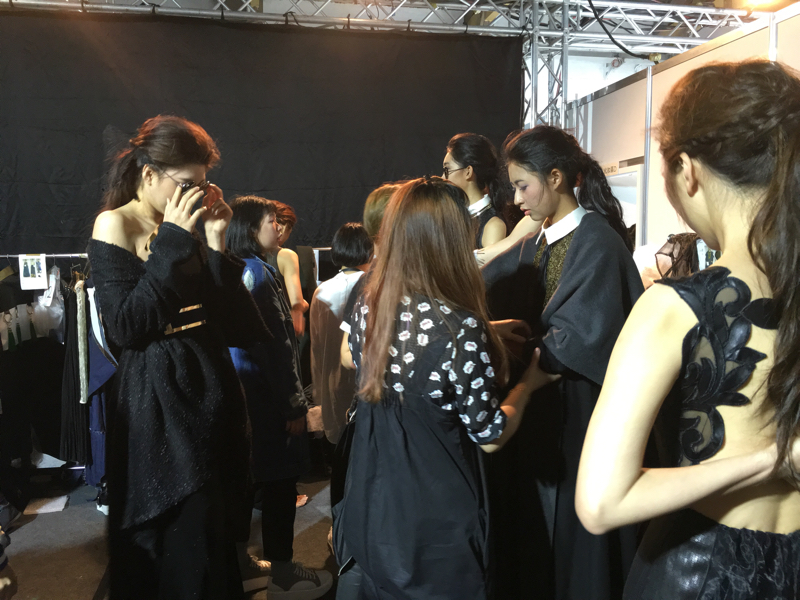 開始前還看到陳婉若一身休閒時尚的打扮進來後台跟一群model合照