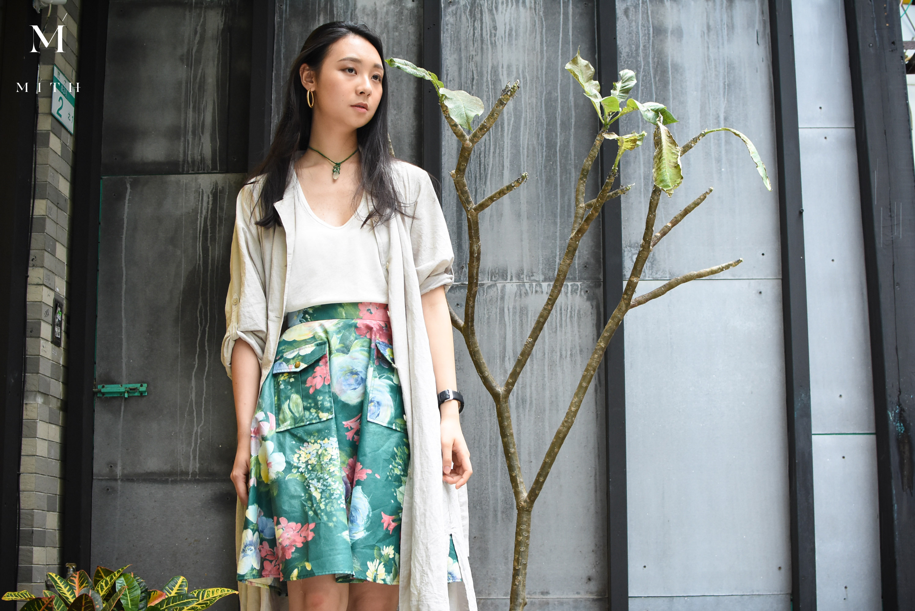 花:嗨我是卡洛琳!去年從實踐服裝設計系畢業,其實從小就對設計這塊很有興趣,不管是室內設計、服裝設計或建築設計,但後來發現自己對於室內設計那塊好像不太在行,哈哈!從小洗澡出來就很喜歡東穿西穿、東掛西掛,算是從那時候開始確定自己喜歡的領域,很有趣吧!哈哈!後來自己一路摸索發現自己很喜歡很優雅的風格,像是chloe、celine這些牌子,又想要加入一些印花的元素,最後幸運的達成目標,創立自己的品牌,而且我覺得在路上遇到穿著路人穿著自己設計的感覺真的很酷!