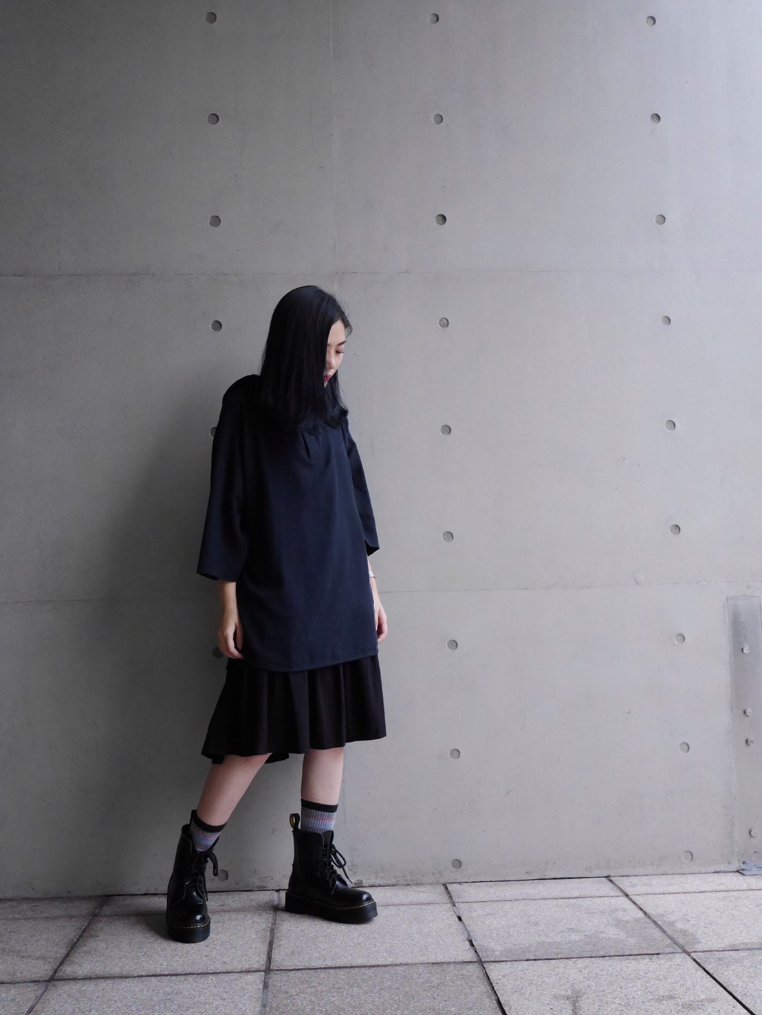只需要在洋裝外頭再加上一件上衣就又是不同的感覺