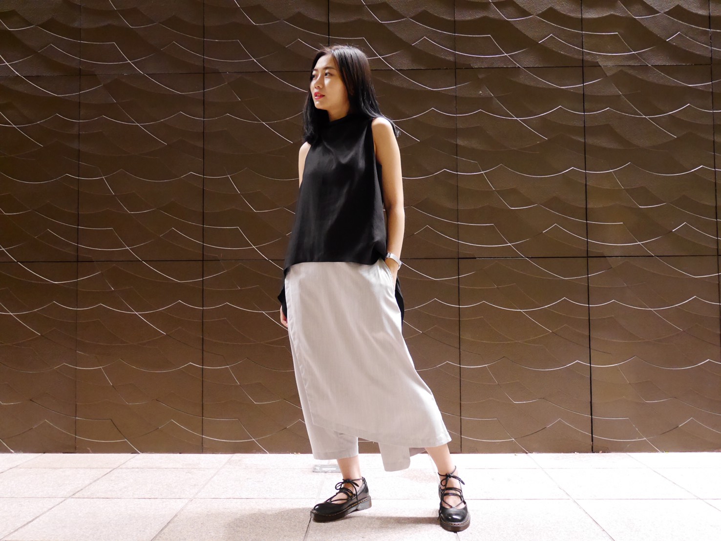 也因為多了這樣的拼接讓整件白色上衣有了畫龍點睛的效果
