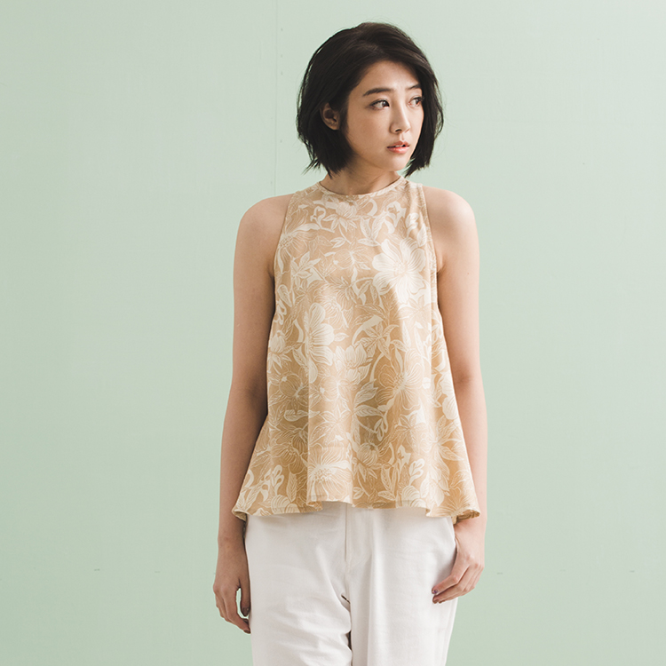 花園盛宴 - 米色印花無袖背心