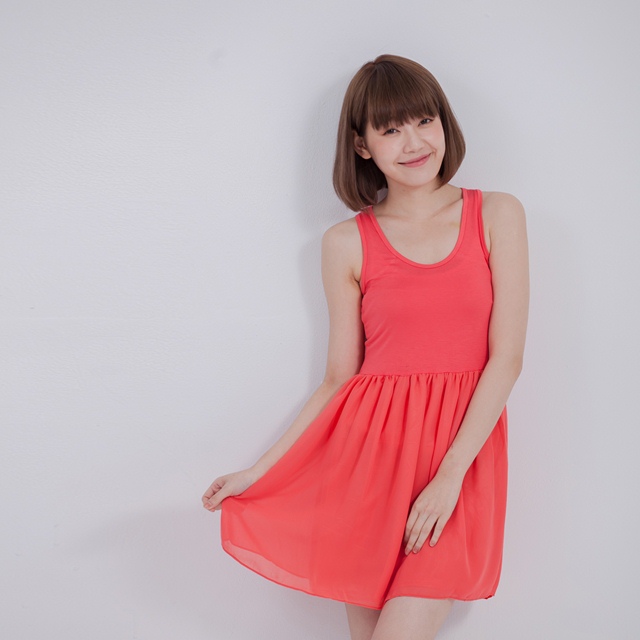 Xandy 腰剪接賽車背洋裝/葡萄柚 $680