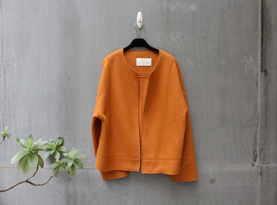 ***自留款***硬挺版型的無領落肩外套不收邊的設計中和了一點隨性感厚毛呢的材質在秋冬都非常實穿不管內搭小洋裝呈現lady感或是穿襯衫露出領子的層次感再配上褲裝都很歐美哦~