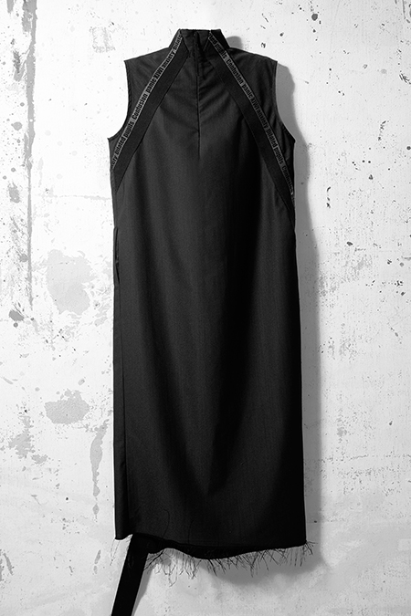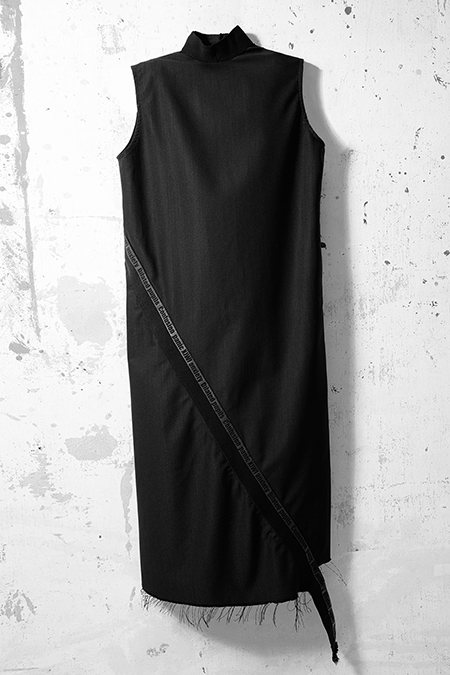 高領長板斜帶洋裝