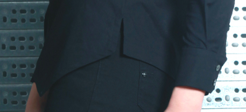 NO.11-1 呂- 極簡建築感襯衫( 黑 )*設計師親自手工製版,師傅手工裁剪及製作,內部結構精緻收邊設計細節*隱式門襟*合身剪裁*協邊開岔*無領設計 *下擺菱型設計尺寸 M領圍:34.5肩寬:40胸圍:93腰圍:84臀圍:94前長:58.2後長:63.7袖圈:44.6袖長:59袖口:19尺寸皆為一圈平量公分客製化尺寸調整客製化服務服裝尺寸可依個人量身定製(請與設計師聯繫)產地/製造方式台灣