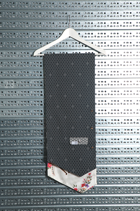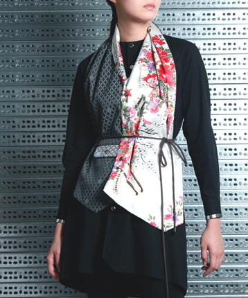 呂- 純絲多穿式解構背心 ( 深色銅錢紋 X 白絲質印花 )