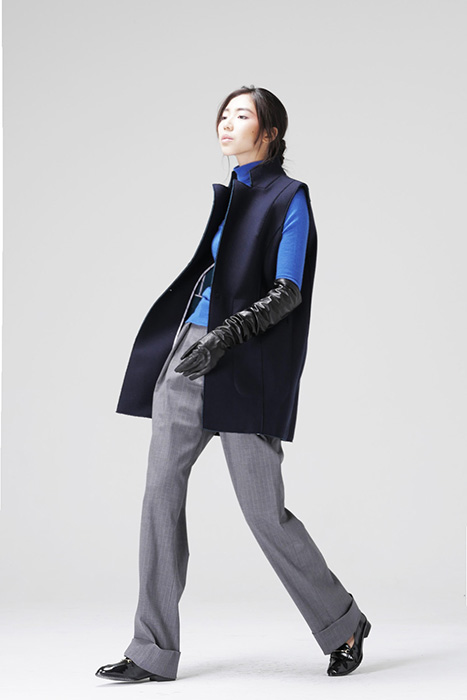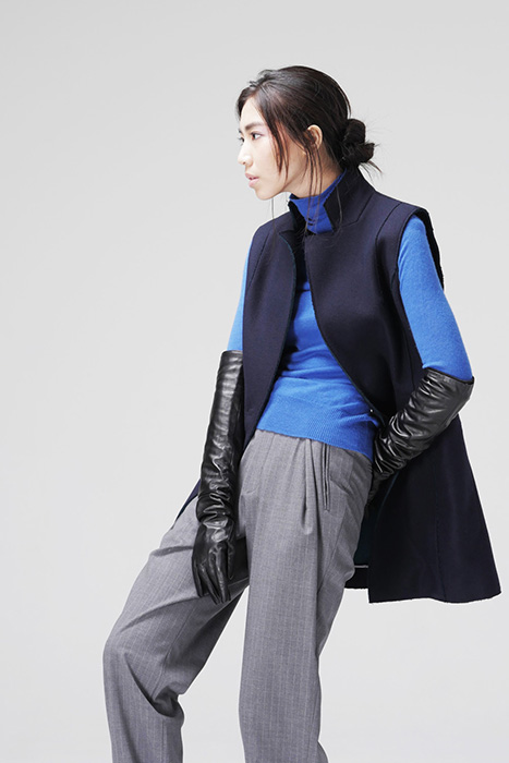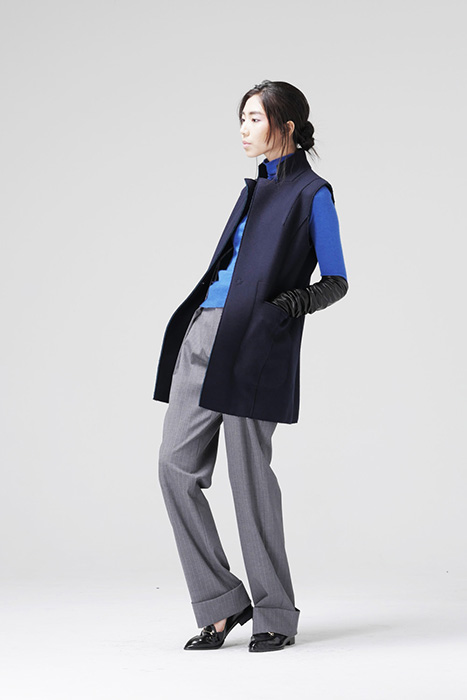 藍綠雙面料切邊背心外套