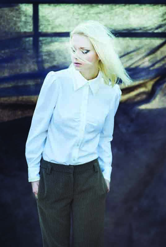 長袖襯衫領袖口以編織帶點綴