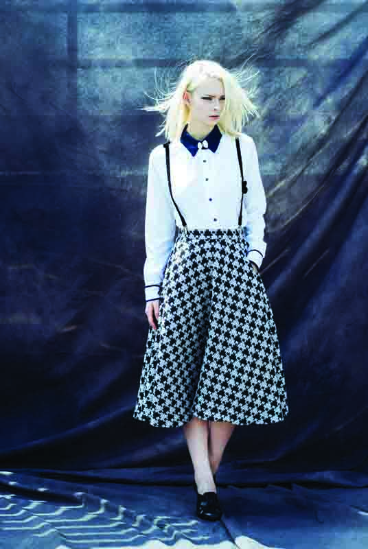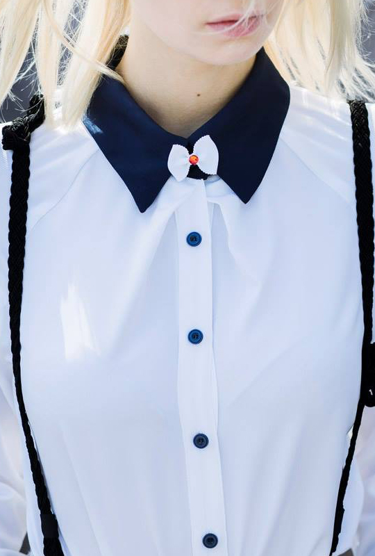 白底藍領襯衫日本織帶迷你領結搭配施華洛世奇水鑽