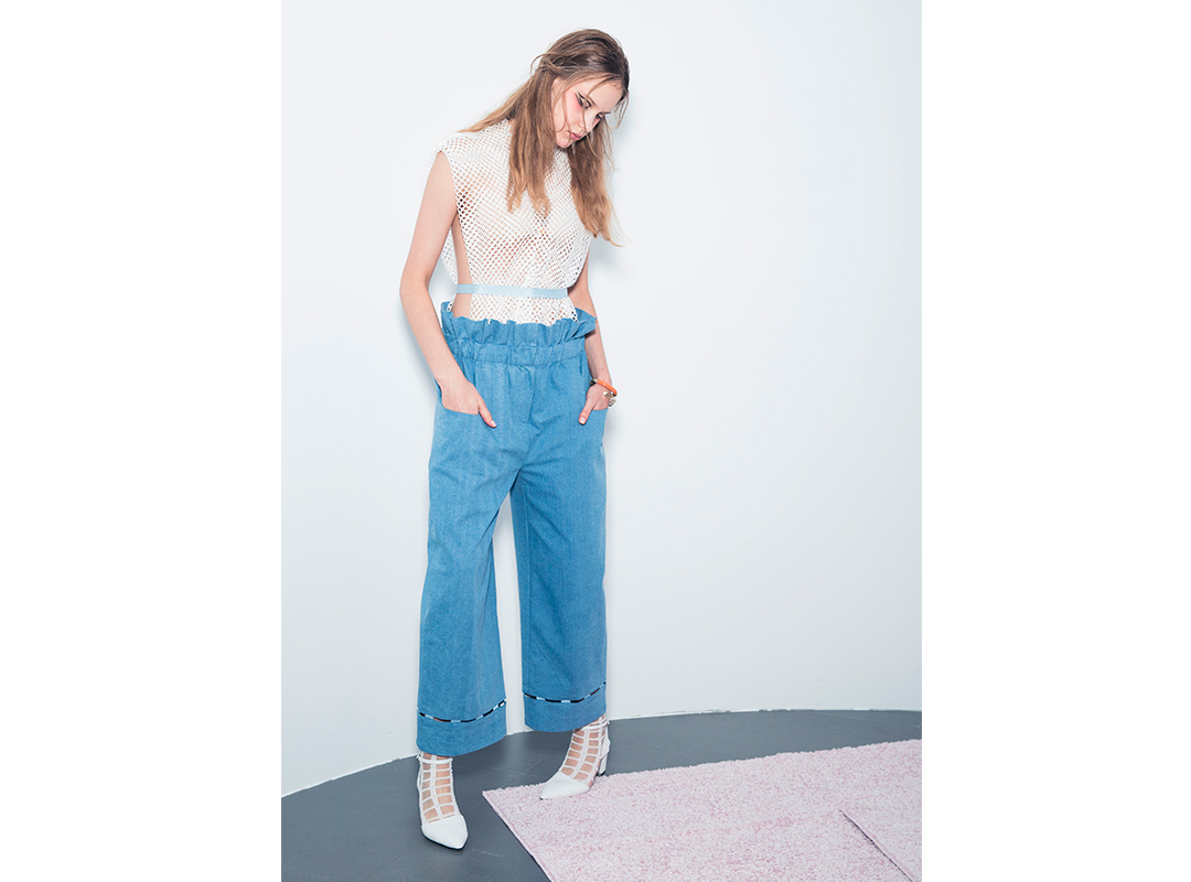 名稱:荷葉邊寬腿牛仔褲