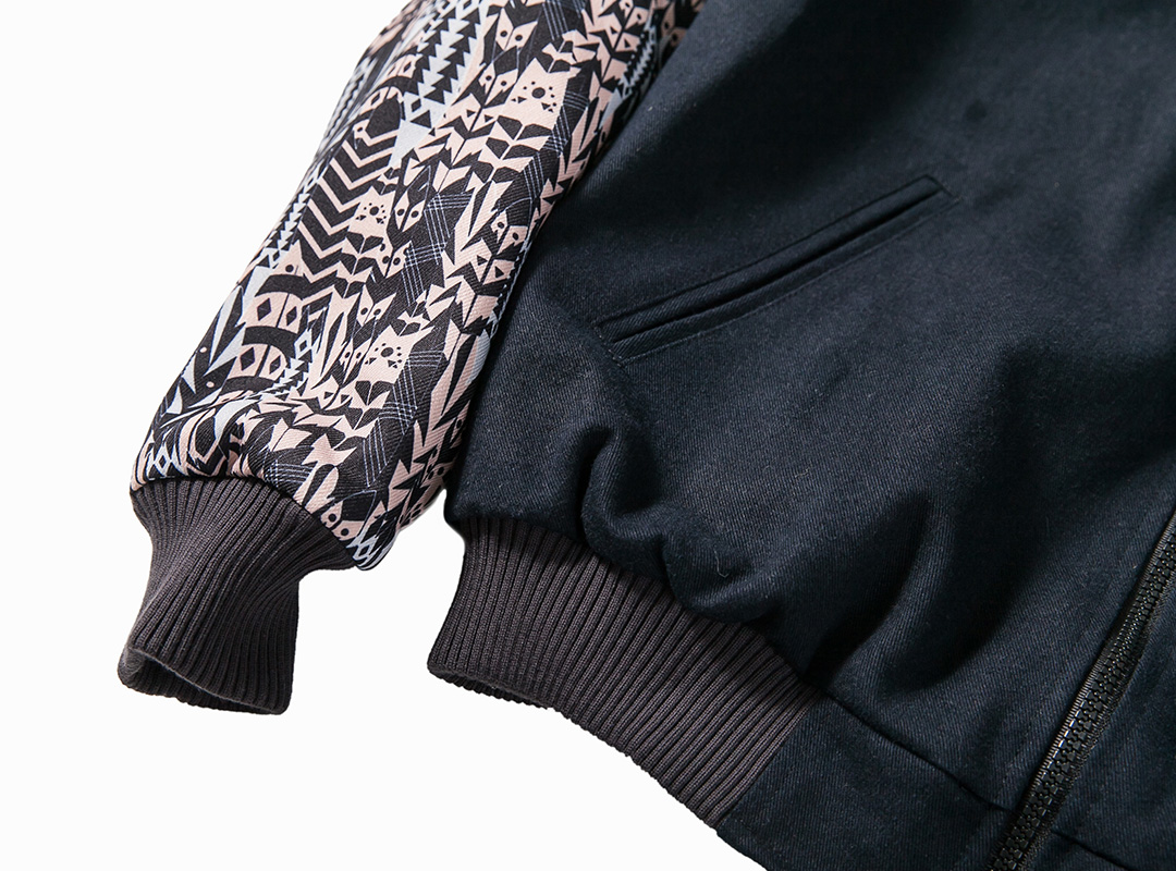 2015年秋冬,花生騷推出了飛行夾克,這是今年衣櫥必備款, 高質感棉布,硬挺有型。半年時間的詳細討論與調整,堅持所有細節,夾克的接縫車工與副料皆用精緻手法慢慢完成。在夾克尾端更用超強縮韌的縮口設計,內裏也使用了高質感布面,達到保暖效果。花生騷更獨自開發台灣原住民的圖騰布與創新的圖像與夾克結合,圖騰在拉鍊底下呈現出的的若隱若現感,在傳統與現代間取得完美平衡,紮實展露帥勁感的全新設計。