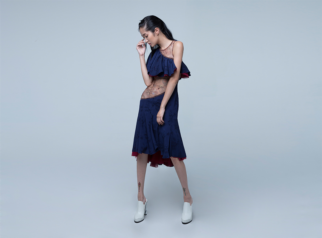 【SPRING/SUMMER 2016 , memento】/刺青不只是皮膚上的圖像,還是一種繪畫、時尚、回憶、榮耀、紀念以及自我肯定。/★ 預購15天出貨★ 商品材質:面料-真絲、雪紡、網紗、彈性纖維★ 肩鈕扣+腰側拉鍊設計★ 尺寸:XS/S/M/L尺寸(平放測量,誤差約 ± 2 CM)XS:胸寬41cm/腰圍32cm/裙長97cmS:胸寬43.5cm/腰圍33.5cm/裙長100cmM:胸寬46cm/腰圍34.5cm/裙長101cmL:胸寬48cm/腰圍36cm/裙長102cm★ 洗滌/保養說明建議乾洗產地台灣 手工製作