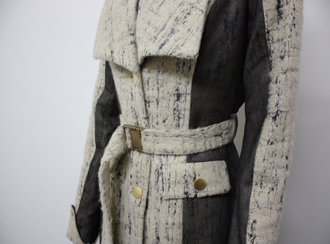女王氣勢!米色拼接修身網紗大衣側身拼接黑色網紗超修身,一衣兩穿可變身大翻領Look~僅存S號M號各一件,50%off出清大特賣~材質: 75% Wool 19% Rayon 6% Polyester尺寸(平量): S號: 肩寬-38cm 胸-44cm 腰-38cm 臀-50cm 衣長-112cm 袖長-67cmM號: 肩寬-40cm 胸-46cm 腰-40cm 臀-52cm 衣長-112cm 袖長-68cm