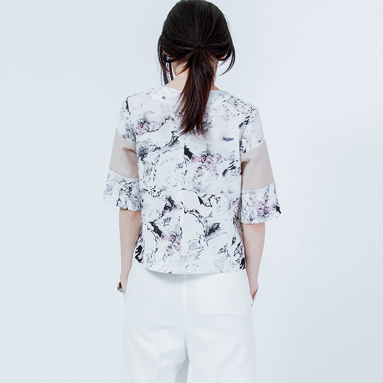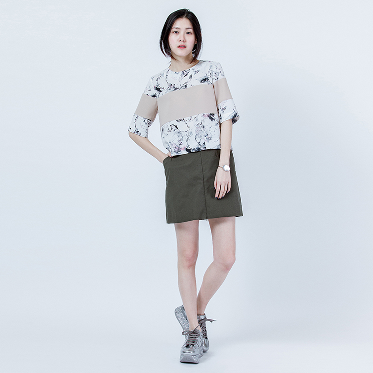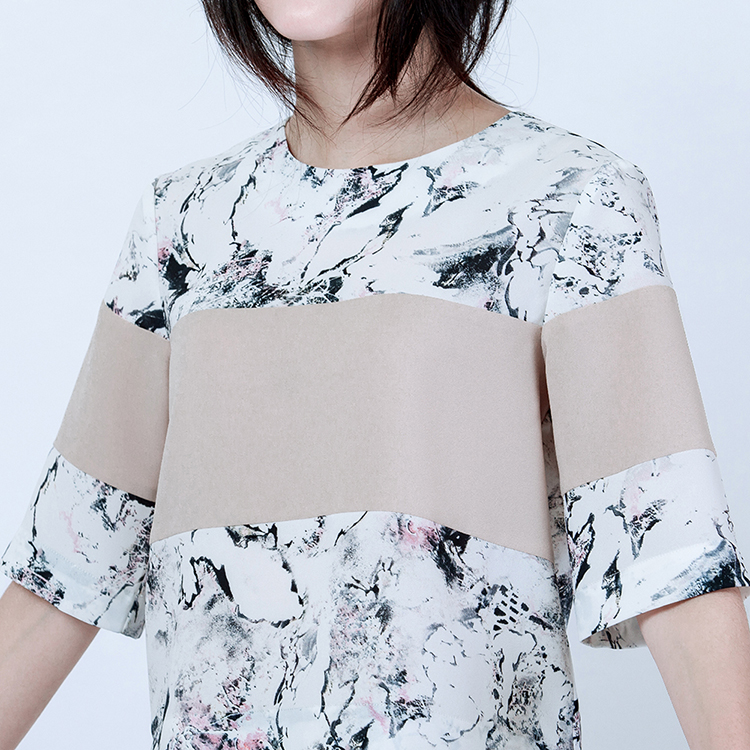 首次與抽象畫藝術家合作,思考如何讓優雅的印花,可以更為出色。我們在版型與印花的結合當中,優雅的抽象畫,搭配精準比例的純色色塊,在優雅的抽象畫中增添率性的氣質。藝術感的印花混合純色平口剪接的視覺效果,裁切出屬於夏天的一件式層次感。