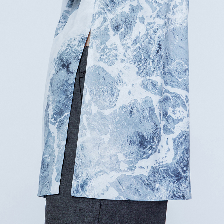 布料描述:採用台灣生產之針織面料,特殊的針織鳥眼(MINI EYELET)織法,布紋表面規律呈現細小縫隙,增加透氣度也減輕重量。尤其,布料增加了吸濕排汗的後加工處理,並保有輕盈舒適度,降低夏日穿著汗水所造成的濕黏感。上述機能特色融合印花設計產品,表現嶄新型態之夏日氣氛,維持iohll的風格在細節中不斷優良化,讓穿著者體驗最大品質。