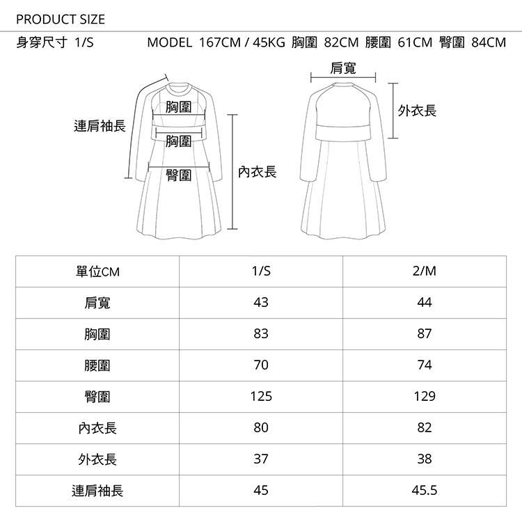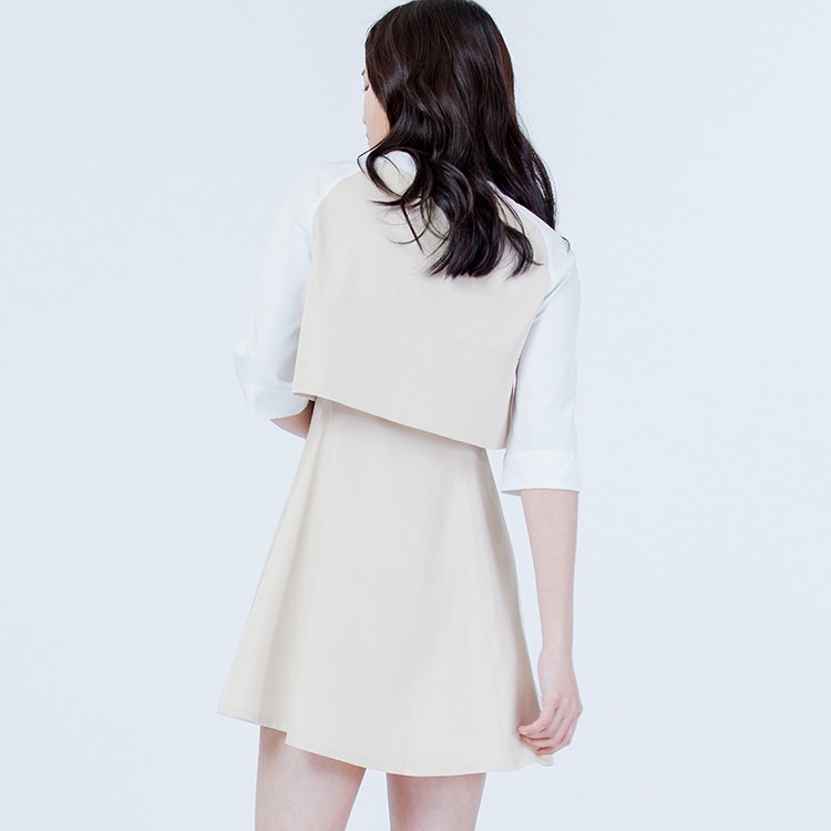 布料描述:良好的手感與舒適感,細緻的斜紋彈性面料,體驗穿著舒適感。加上結合富有運動機能感的針織面料,彈性與挺度適中,也能充分體現薄透效果。