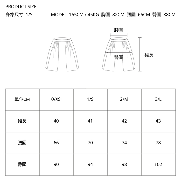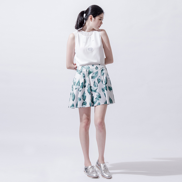 結合活褶與細褶的設計外觀,有別於一般的細褶波浪裙。試圖在常規裙型之下創造不同的穿著視覺體驗,第一眼就可以看出設計差別。俏皮可愛的裙長設定,並且附有內裏,不會因為此輕薄布料而過分透明。