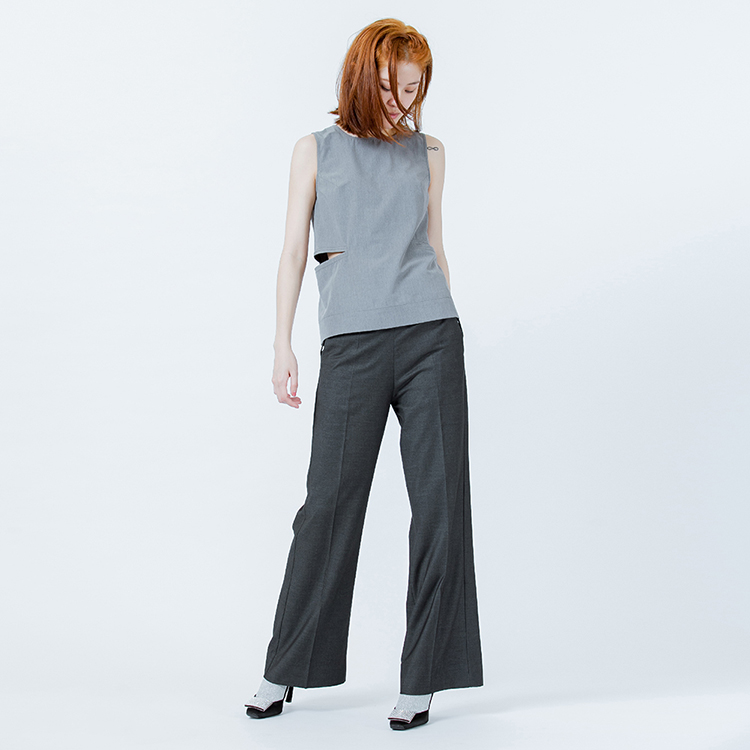 在身體與衣著的關係之間,不僅僅是給予或者接受。輕巧地在腰間劃開一道裂縫,也許是裸露,更是一種對話的方式。裂縫來自於口袋的變形設計,使線條不只是線條,卸下夾層內裡,更打開了視覺的更多可能。