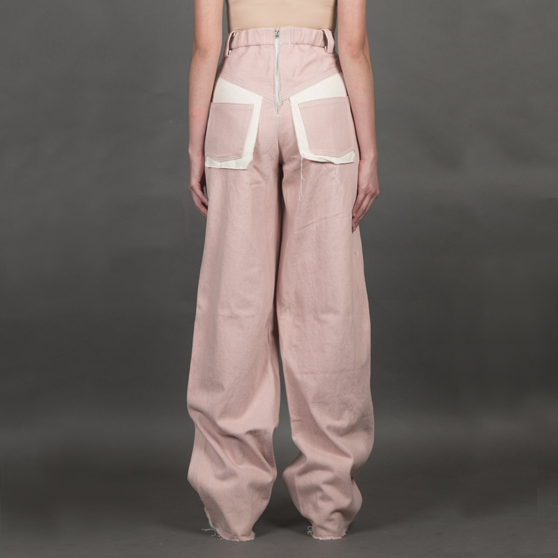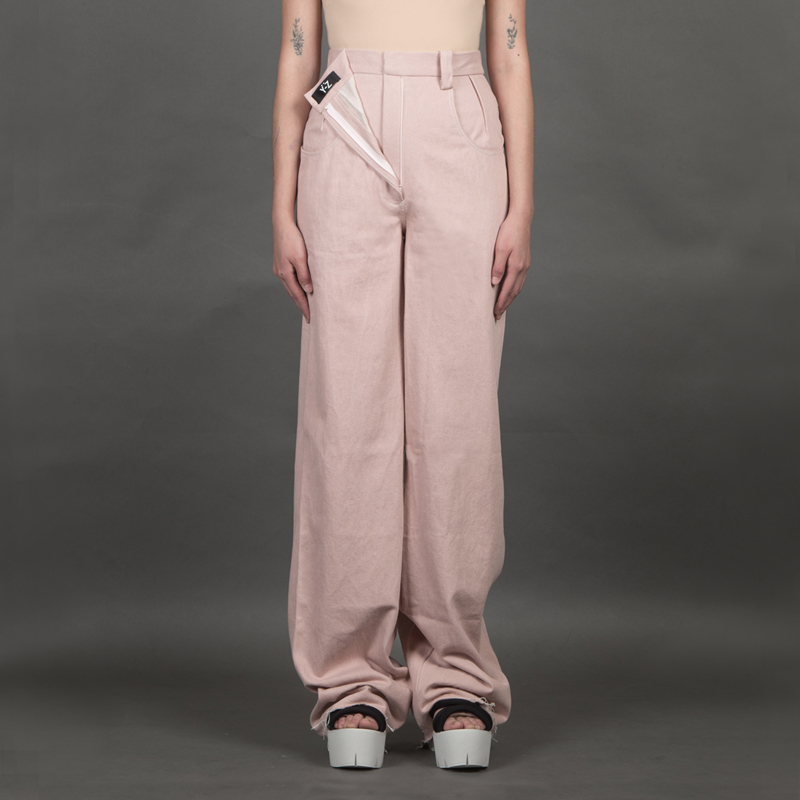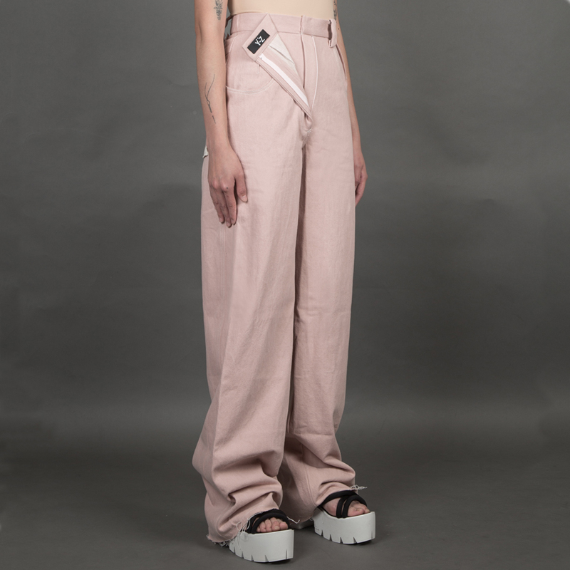 Y-Z STUDIO 粉紅裝飾拉鍊寬版牛仔褲