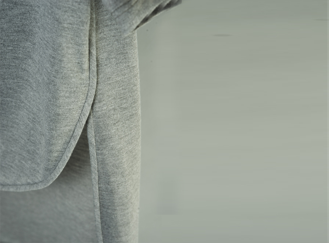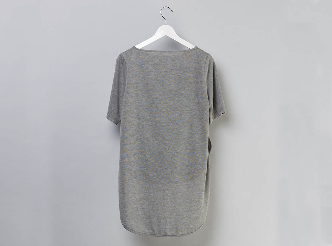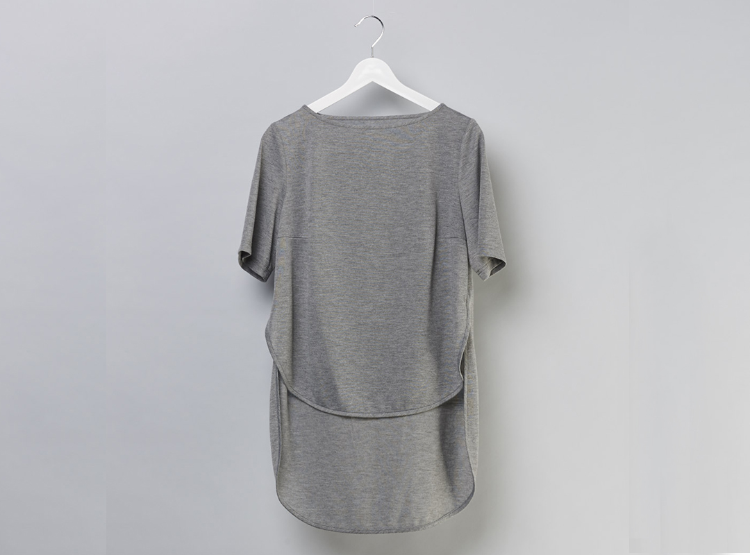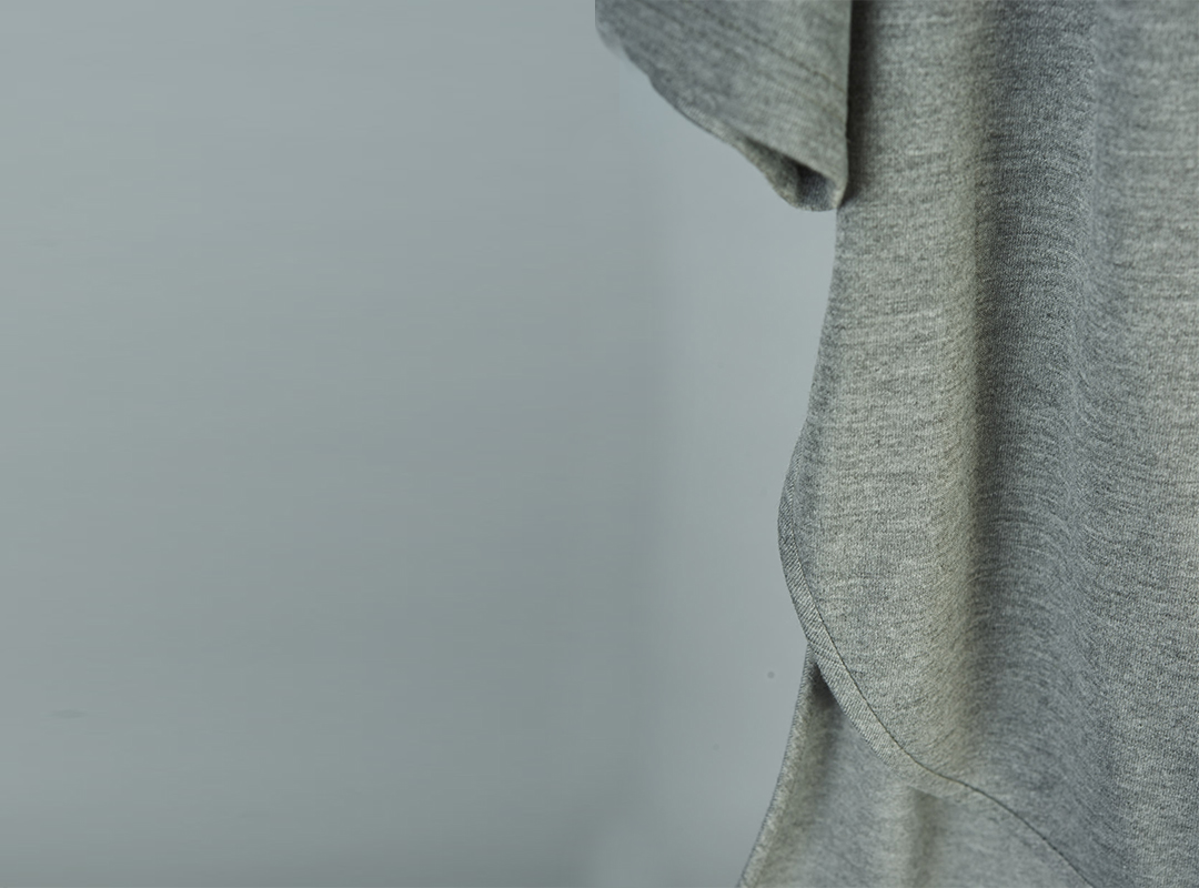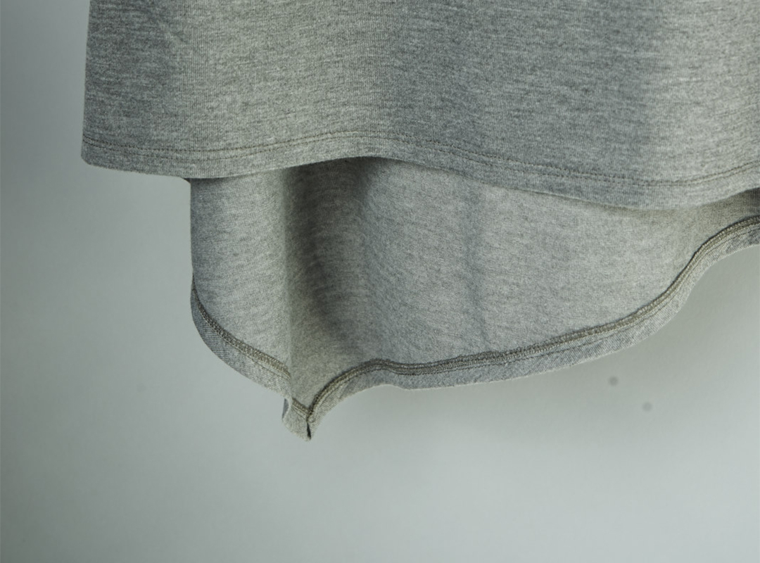 改變傳統Tshirt版型,以前短後長的弧形剪裁,細緻滾邊。