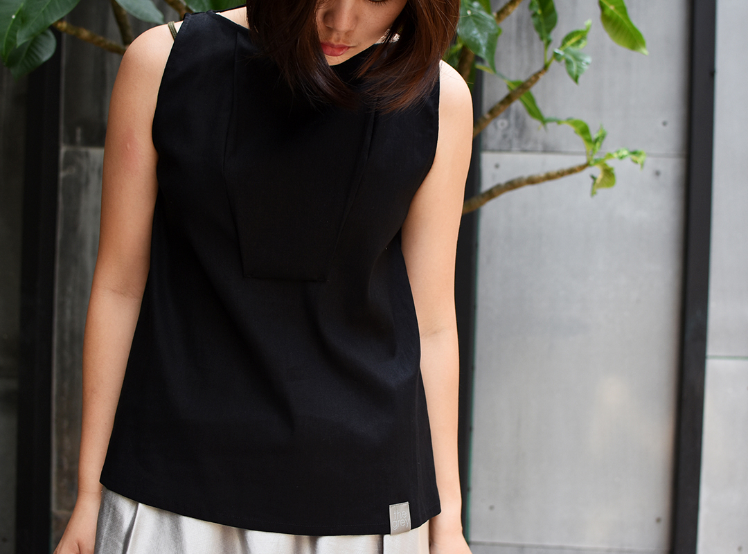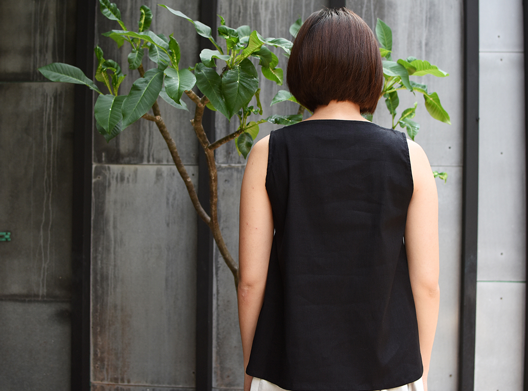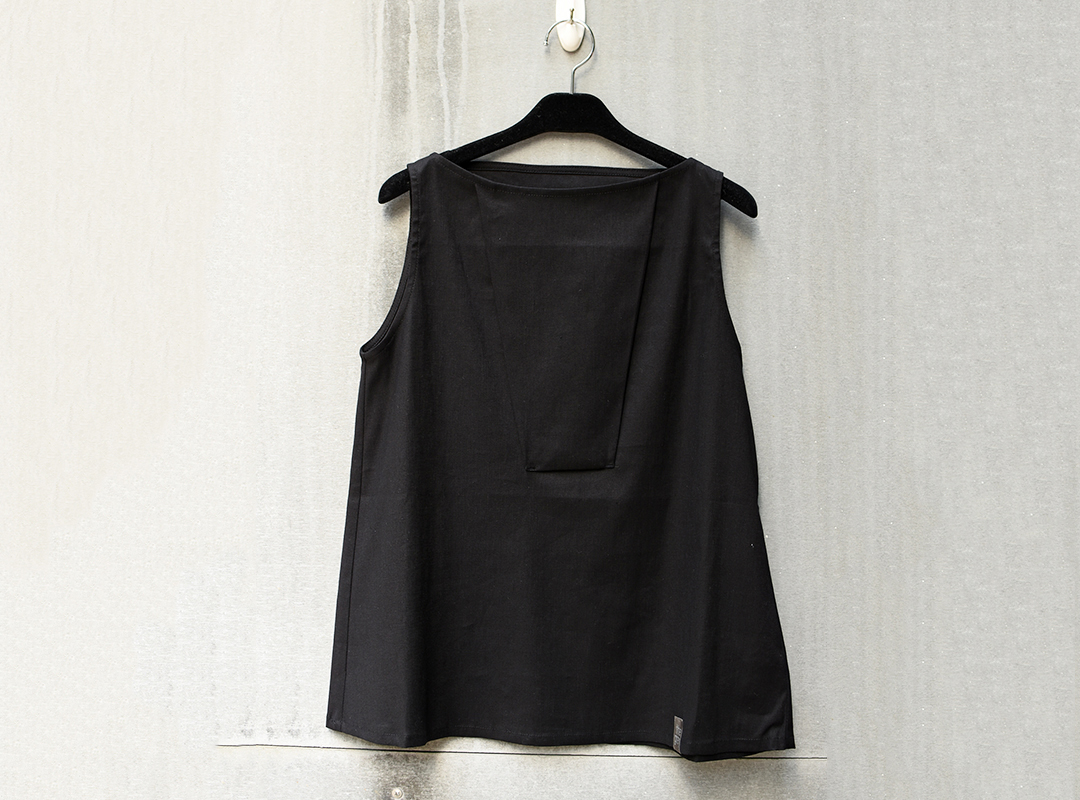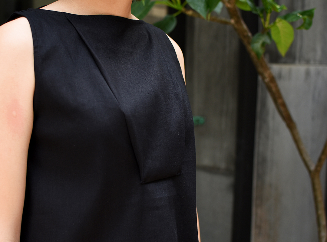 前身以方型立體剪裁,創造出人體與服裝的空間。