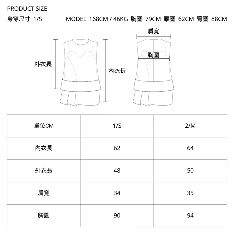 兩款無袖背心細膩結合,比例的表現,賦予全新視覺刺激,也能分開獨自單穿。