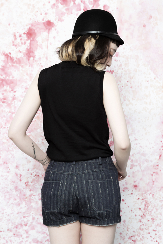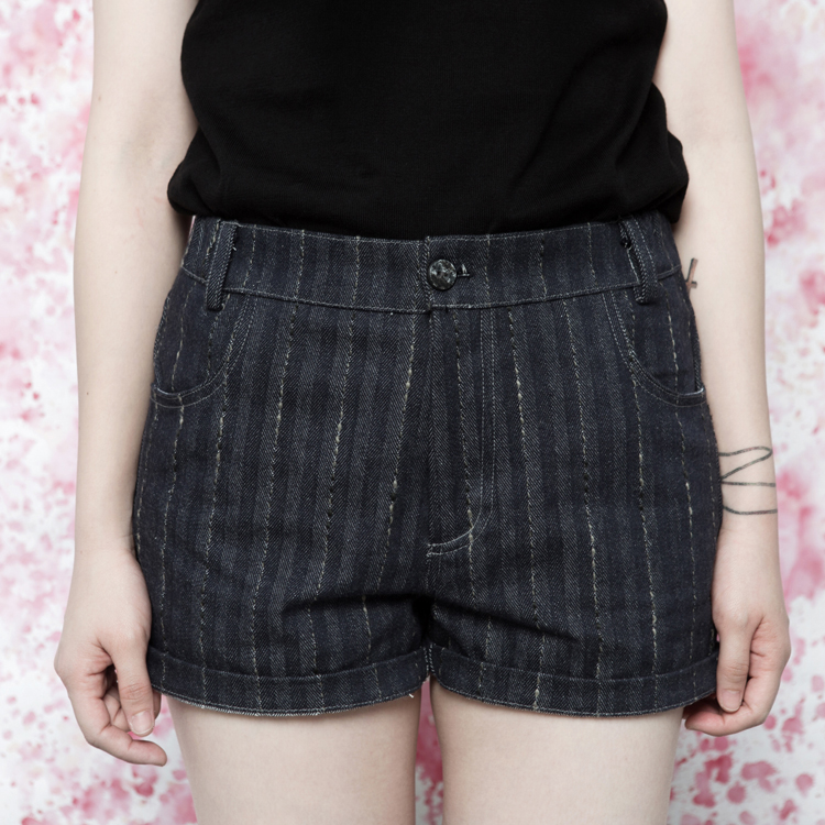 【波光斑斕 - 藍白線條點點牛仔短褲】