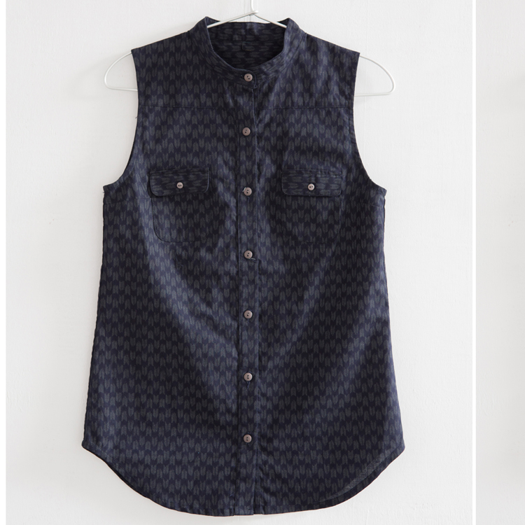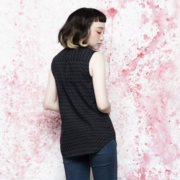 【重返榮耀 - 藍白弓箭印花無袖襯衫】