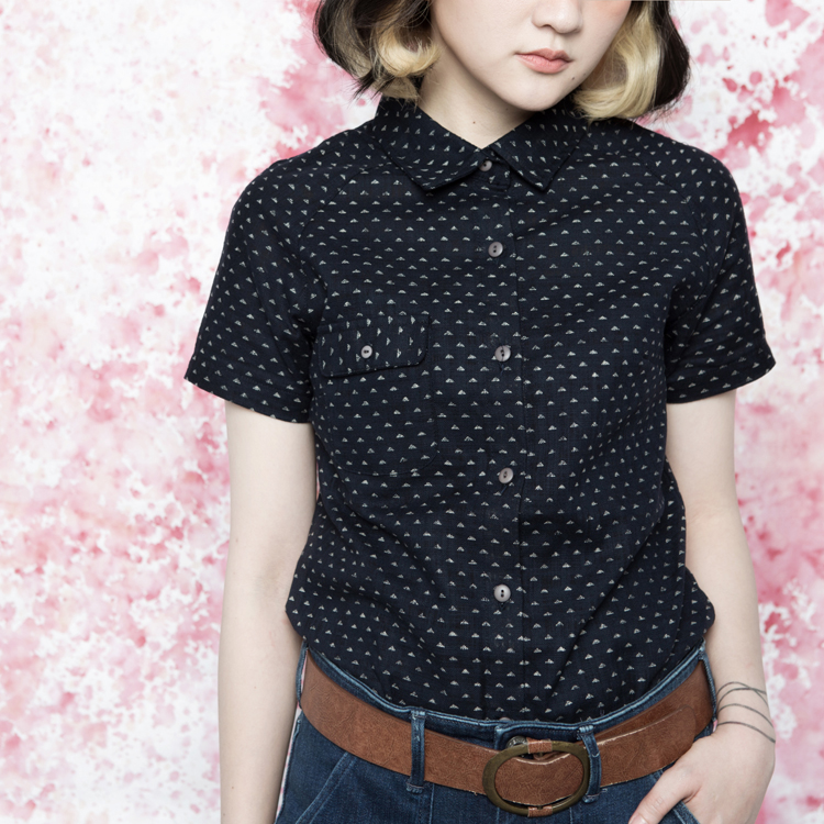 【白雪皚皚- 藍白山丘印花短袖襯衫】