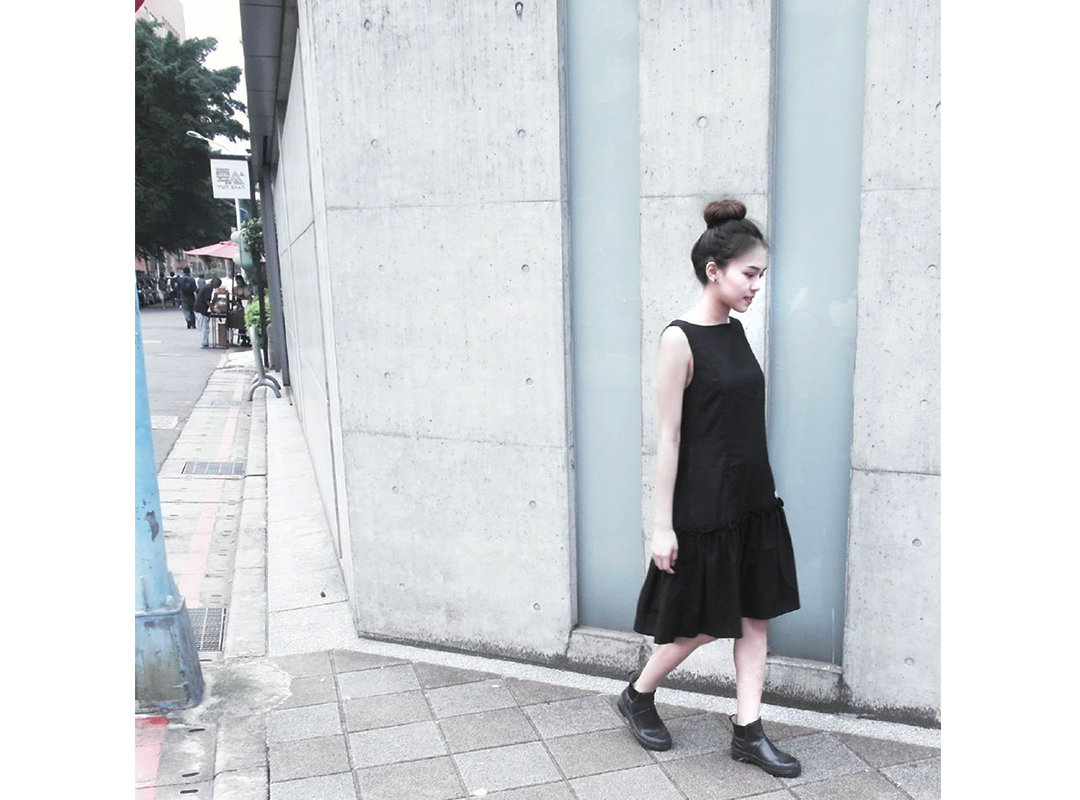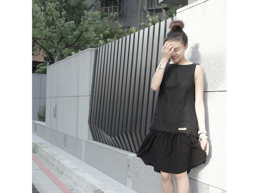 最沒有限制的黑色,上身為純棉織紋布,細緻但不會過於花俏,