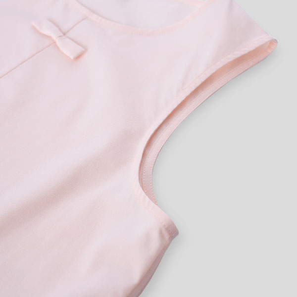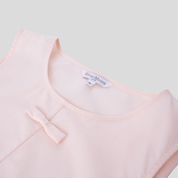 有機棉及再生PET混紡纖維,手感極佳,舒適透氣。胸口蝴蝶結設計,展現法式優雅,搭配性極高。
