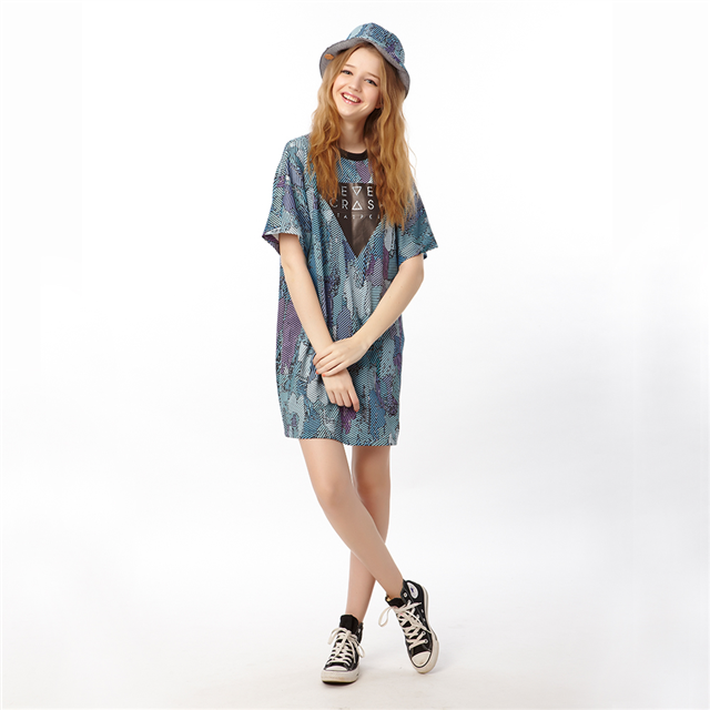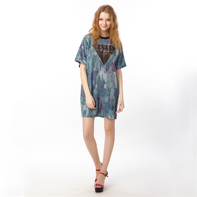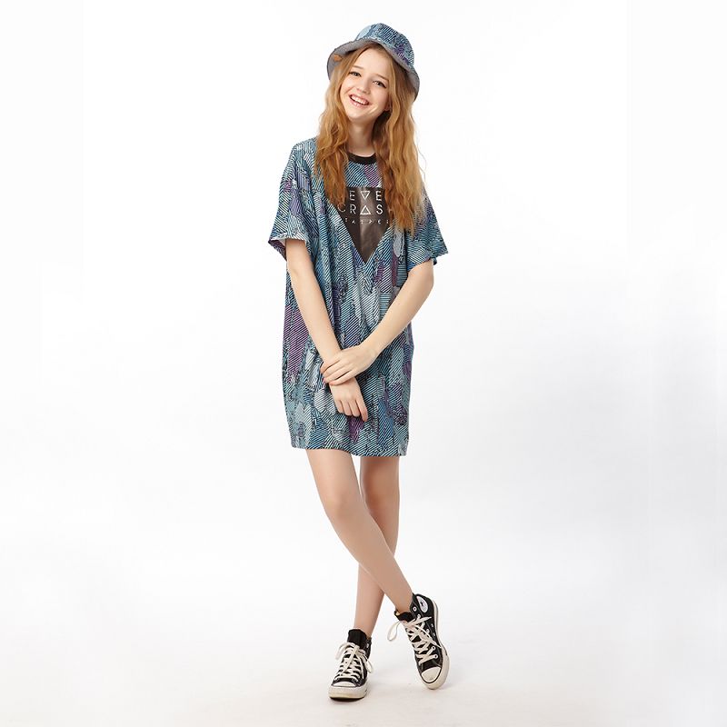 城市迷彩LOGO短袖寬洋裝 (F15EUCDR01)
