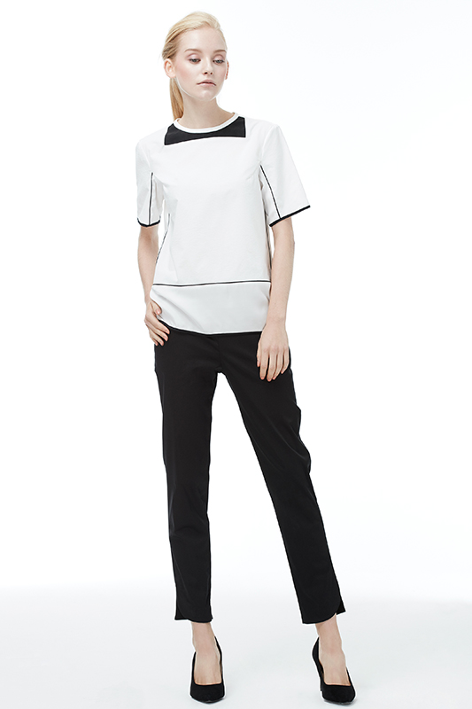Short Sleeves Dual-Fabric Top